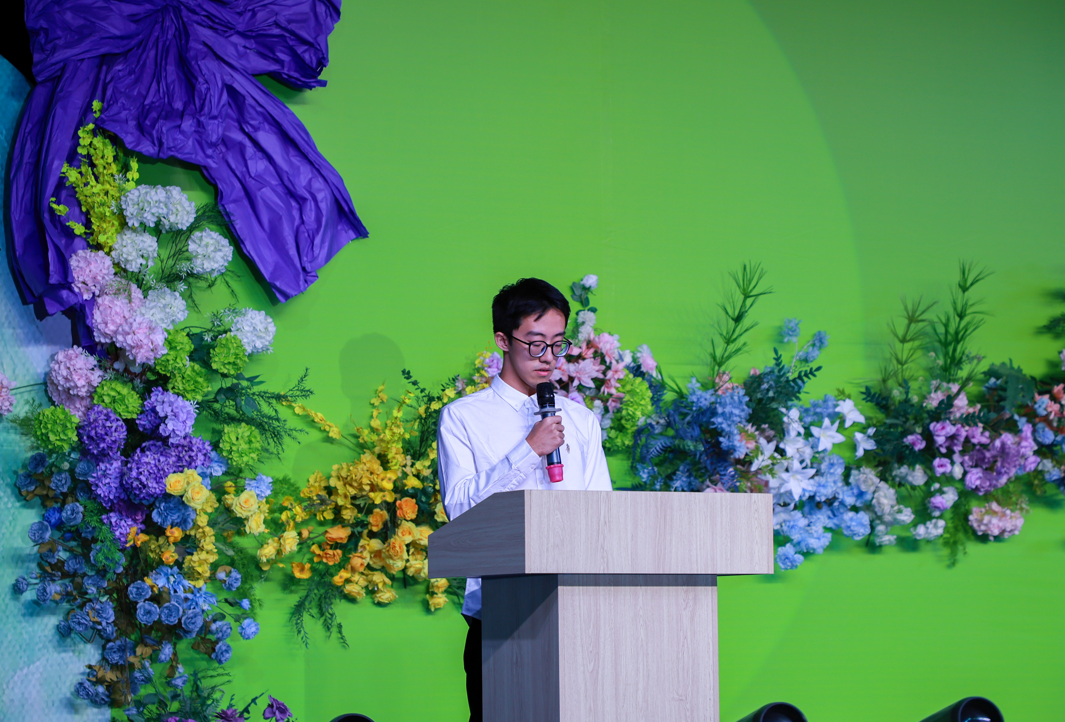 新生代表陈勇征分享了入学体会,感谢国教院的国际化理念与教学模式为他“打开了通向世界的大门”。他明确了三方面目标:夯实专业基础、提升语言成绩、提前规划留学,并为此制定了“每日复盘”的学习机制。最后,他感谢学校与师长,呼吁同学们脚踏实地,共同向海外名校的目标稳步迈进。
