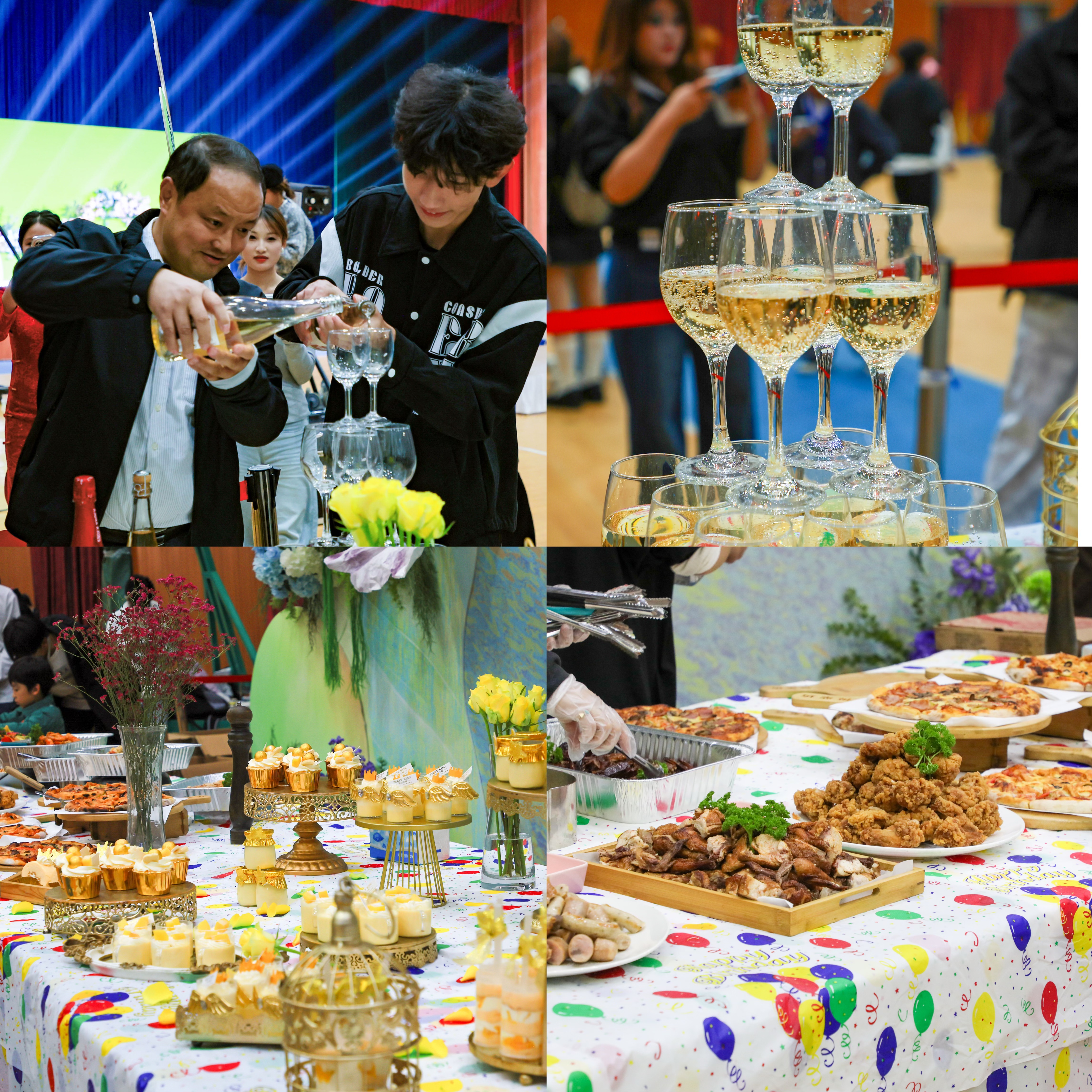 活动尾声,郑校助与2025级新生代表陈澍鑫共同注满璀璨的香槟塔。随着气泡升腾,晚宴正式开启,同学们在欢声笑语中自由交流、尽享美食,现场化作一片温暖交融的海洋。
