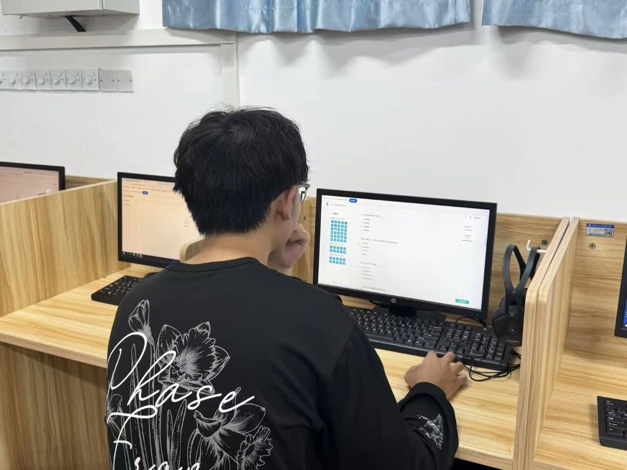 为让学生充分备考,学院联动工业和信息化部人才交流中心,定制线上课程与专属模拟题库。课程紧扣行业前沿,拆解专业难点,题库覆盖全题型,方便学生查漏补缺。考场内秩序井然,考生们紧盯屏幕专注作答,遇到综合应用题时认真推演,作答实操题时熟练操作,尽显扎实的知识功底,考务老师则逐一核对考生身份,定时巡查考场,细致解答考生的合规疑问,全力保障考试公平规范。