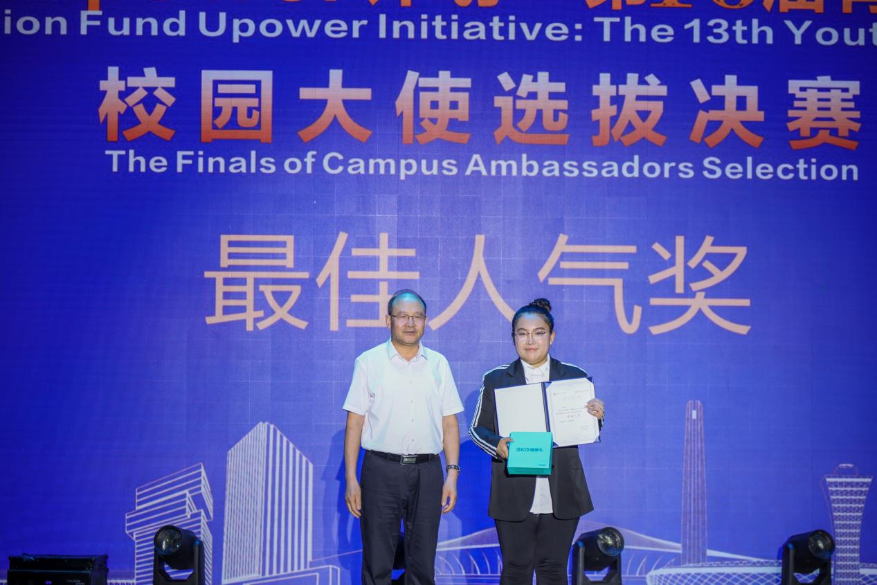 校长王金叶为选手颁发“校园大使”最佳人气奖